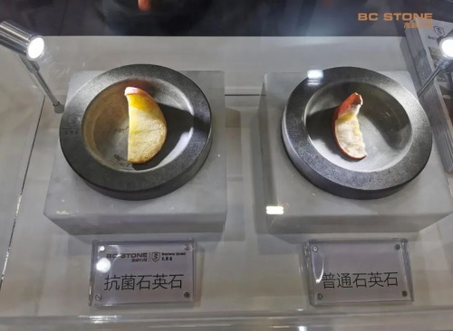 有高颜值,更有高科技,突破性的长效抗菌技术在石材上的应用,带来全天24小时持久抗菌保护。经专业权威机构检测,克菌盾人造石对大肠杆菌、金黄色葡萄球菌等有害菌种灭菌率超过99%。