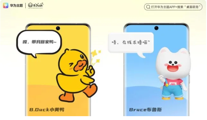 在工作生活节奏愈发忙碌的今天,谁不想拥有一只憨态可掬、聪明伶俐、贴心陪伴在身边的萌宠呢?但因为时间、精力和环境的限制,大多数996的年轻人很难实现,而云养宠已成为年轻人追逐的新潮流,这种形式让那些喜欢小动物、却因自身环境无法饲养的年轻人实现“养宠自由”。据第三方数据显示,2021下半年就有71.8%中国网民曾在线领养宠物进行“云养宠”。近日,华为主题推出养宠新玩法“桌面萌宠”,并随之首发上线知名潮流IP“B.Duck小黄鸭”及华为主题原创IP “猫镇·布鲁斯”两个萌宠形象,让用户随时随地云养宠,给生活带来暖心陪伴。