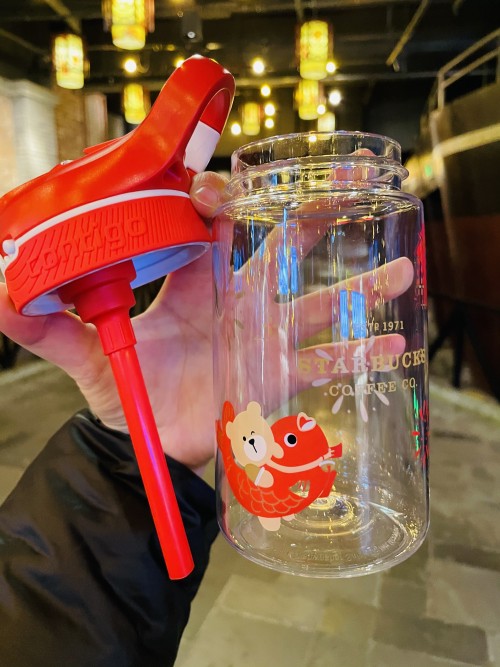 除了保温杯,另一款同样是鲤鱼主题的锁扣吸管杯也很吸睛哦。时尚极简风格的设计感+满满新年氛围的配色,透明杯身上的小鲤鱼点缀主题,搭配的鲤鱼杯套还有亮晶晶的鳞片呢,扑闪扑闪的,有种disco时代的复古风潮,拿上它,你就是2021最fashion的打工人,新年聚会绝对slay全场!