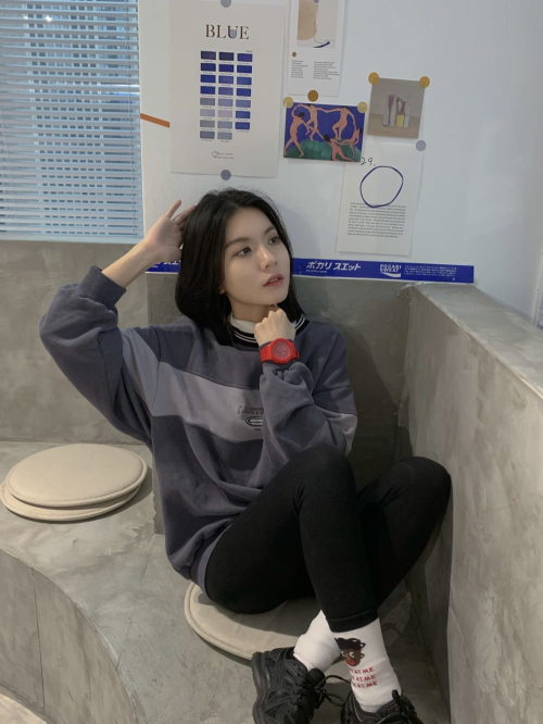 哪一个女生能抵挡住红色诱惑呢?以低饱和度的灰色卫衣打底,腕间的一抹红带来蓬勃而出的青春气息,活力感溢出屏幕。