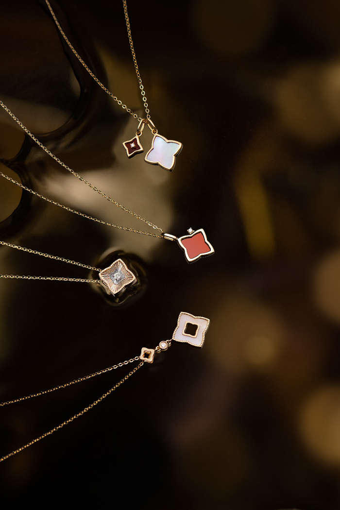 当经典永恒的菱形纹与建筑艺术美学经典元素相碰撞会有怎样的奇遇?无论是热情似火的红玛瑙与璀钻的不期而遇,还是炫彩贝母与璀钻的完美融合,亦或是精镶璀钻的鎏光溢彩都表达着你炙热的爱意……干脆利落的自然简约几何之美毫不费力诠释多变风格,比利时王室精湛工艺打磨出的优质钻石让她时时刻刻都如女王一般闪耀着星光。更有情人节限定三戴款,红玛瑙、粉贝与天然真钻交相辉映,一款三戴,展现别样风情!