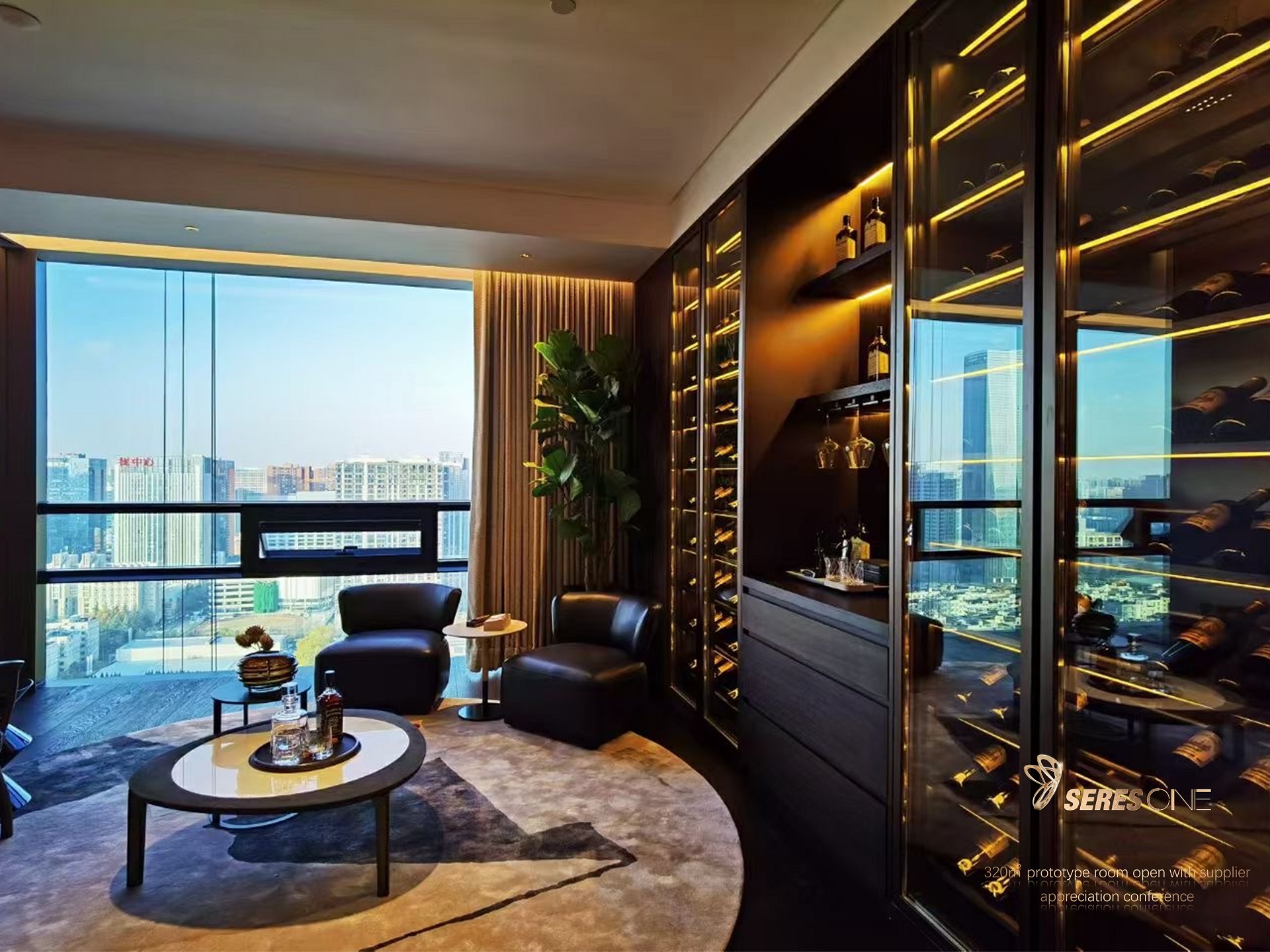 平衡当下快节奏的城市生活,转变看待世界的角度,赛里斯壹号是对当下塔尖生活的精细考量。客厅、餐厅、厨房一体化设计,可随时变身私家派对。厨房不再是单一的烹饪场所,它被融入了更多人性化设计、高科技功能与丰富的情感,让其变成一个“多功能厅”,兼作餐桌与工作台的长桌延伸至开放式厨房,体现了社交、工作、用餐不再泾渭分明的生活方式,划分一动一静的生活节奏。在这个人们逐渐远离烹饪的时代,赛里斯壹号厨房让我们重拾烹饪的美好,开启全新的人与食物相处的方式。