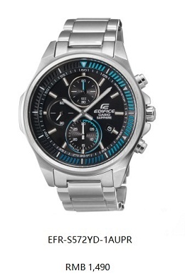 EFR-S572YD-1AUPR 轻薄的表壳设计,与配搭的手腕契合满分。值得一说的是表款的搭配设计,银色钢表带,搭着内盘的暗沉的黑色与天空蓝,能为日常的生活穿着轻松搭配,打造简约而又细节亮眼的高定单品。