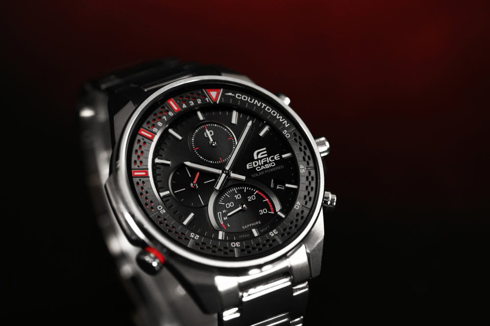 对于本季轻薄系列,秉持初衷地在原先基础上融合现代技术,对高端腕表采用了人造蓝宝石玻璃镜面,提高其的耐磨性和坚固性。此外,EFS-S590系列搭载太阳能动力,保证腕表的转动系统,哪怕在弱光环境下也能将光能转化成电能,储存在电池中。