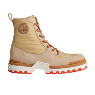 Parachute小牛皮系带短靴,柠檬汁色、湖水蓝色、香瓜色、泡泡糖色,以斑斓色彩沉载甜美诗意,帆布搭配绒面的拼接材质,相互呼应,帆布面料柔软防水而又兼具保暖功能,为户外运动与日常穿着提供绝佳帮助。