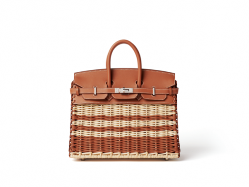 经典Birkin的本季新款,由Swift小牛皮带辐条编织而成,搭配柳条,是皮质与木质的巧妙结合,呈现更加和谐有韵律的轮廓和外观,为铂金包营造出和谐的视觉美学。