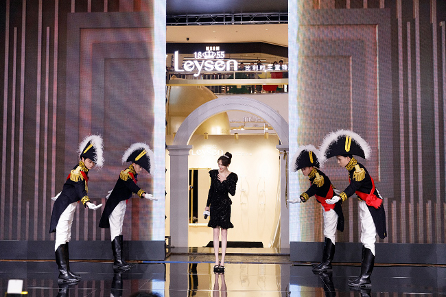 当日,莱绅通灵王室克拉钻旗舰定制系列产品、珍贵的比利时古董级别款式、璀璨彩宝共百颗闪耀的钻石相继亮相,向观众展示了传颂百年的王室品位。莱绅通灵首席时尚官唐嫣身着复古黑色短裙、头戴莱绅通灵神秘古董王冠,佩戴莱绅通灵王室庄园系列惊艳亮相,赴约平安夜,瞬间将现场气氛推向高潮。